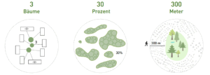 Gemeinsam mit CONT-S und Esri Schweiz AG pilotiert die Future City Alliance erstmals eine GIS-gestützte Analyse der international anerkannten 3-30-300-Regel (RMIT/TU Dresden). Untersucht werden die Sichtbarkeit von Bäumen aus Wohngebäuden, die Baumkronendichte sowie der Zugang zu Grünräumen im 300-Meter-Radius.